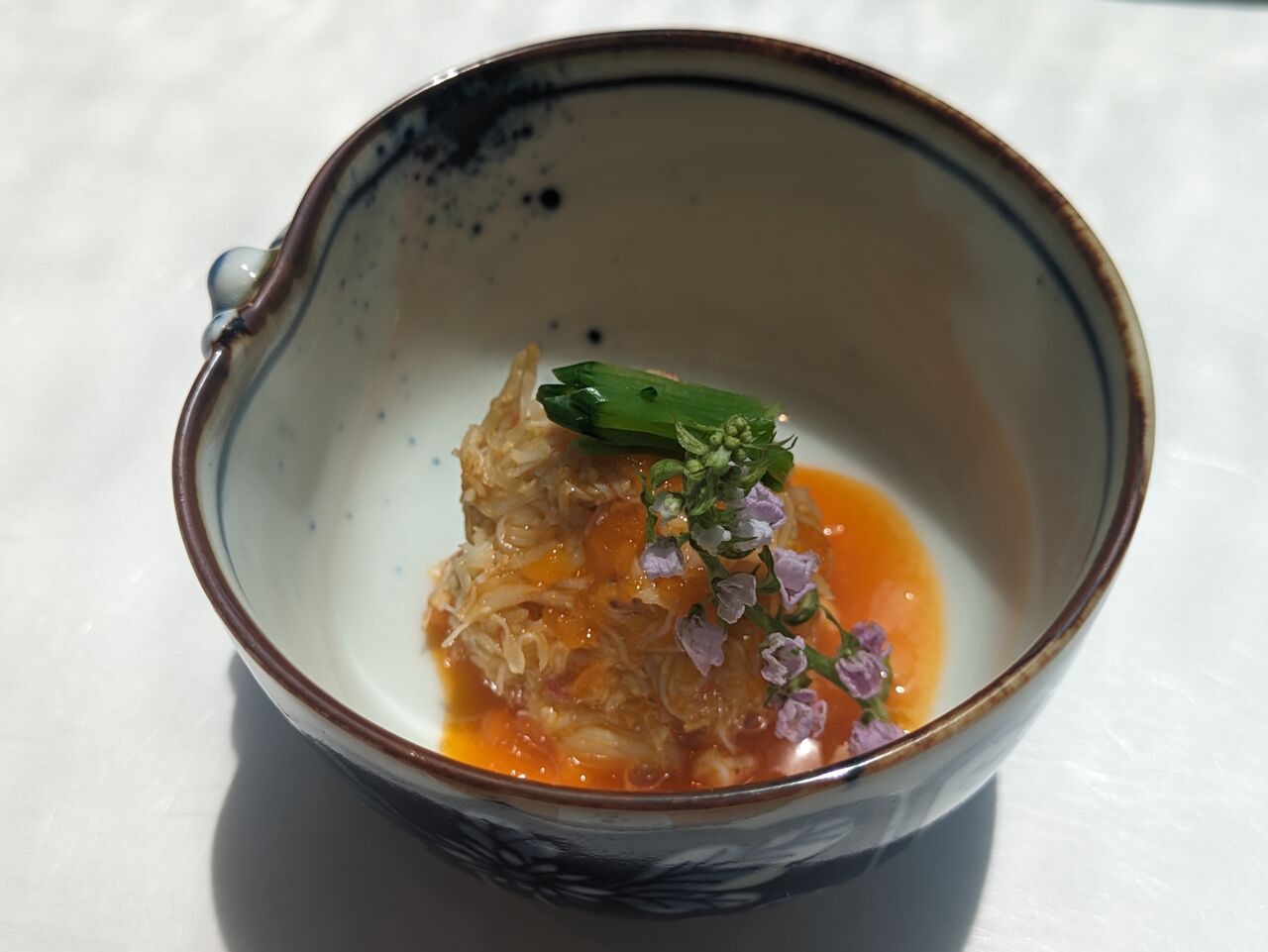 まずは最初の一品『毛ガニの黄身酢掛け』