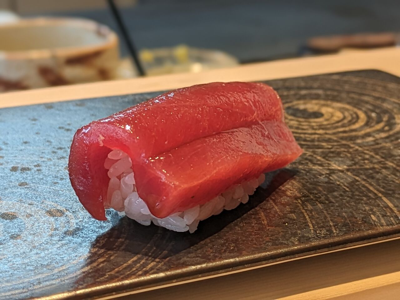 赤身がつやつやの漬けマグロが登場。
