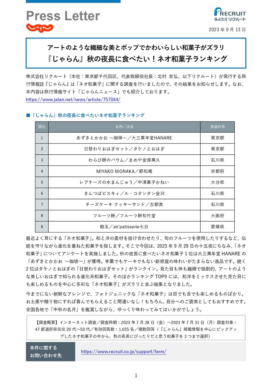 ※『「じゃらん」秋の夜長に食べたいネオ和菓子ランキング』についての詳細は、こちら。