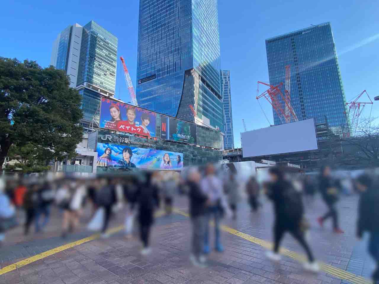 スクランブル交差点の大型ビジョンは