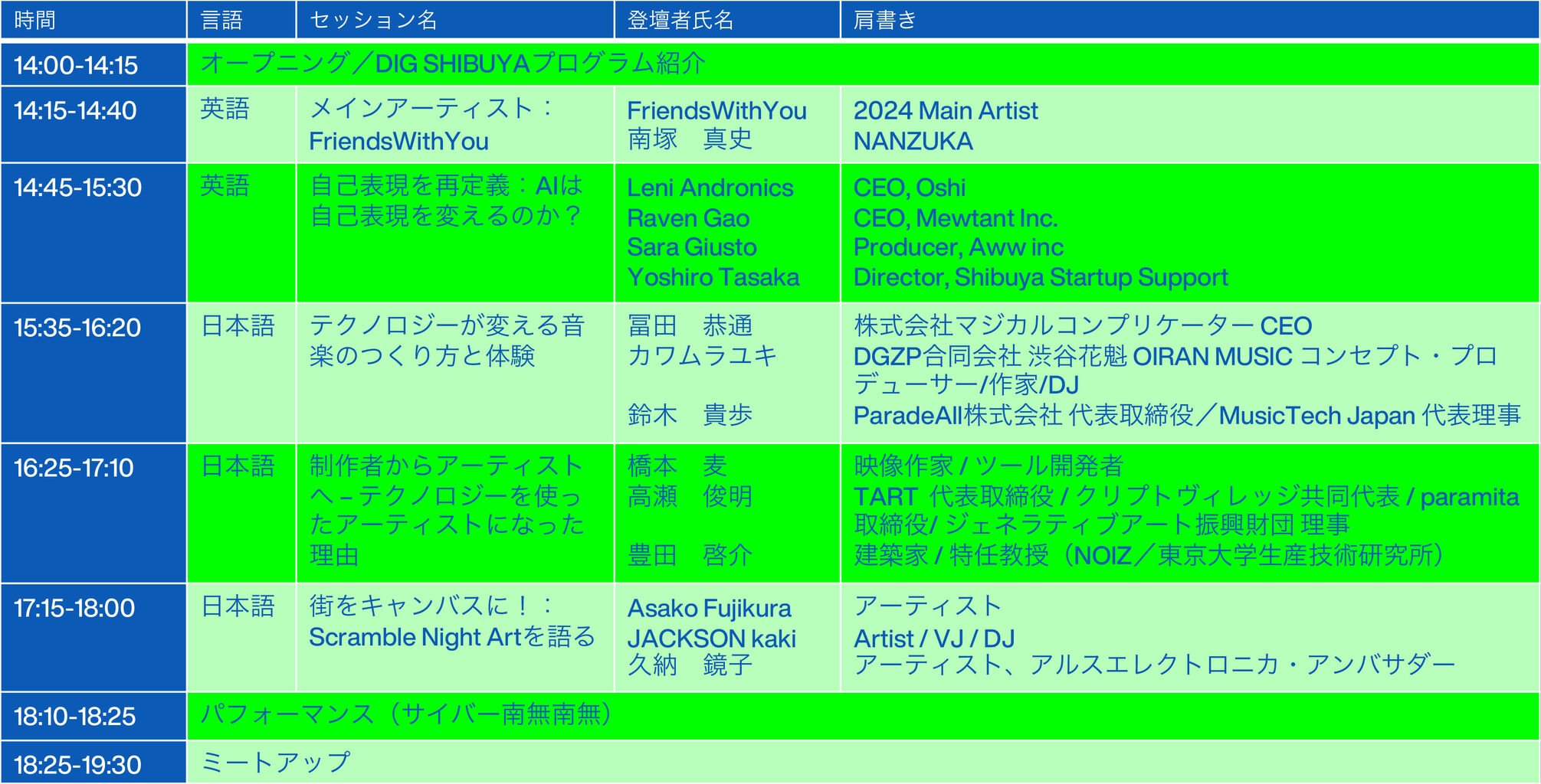 会 場:渋谷公園通り周辺エリア、代々木公園ケヤキ並木、渋谷区立北谷公園、Spotify O-EAST他