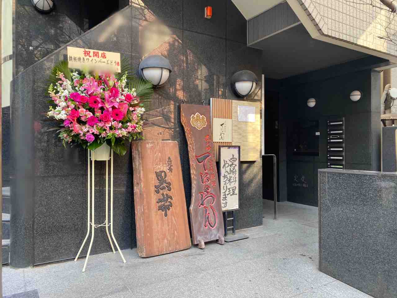 と、近くに開店祝いのお花が見える。